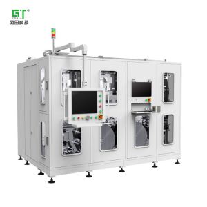 保持架自動(dòng)扣合、電芯包膜、自動(dòng)入殼(自帶殼體清潔)、自動(dòng)扣合頂蓋、