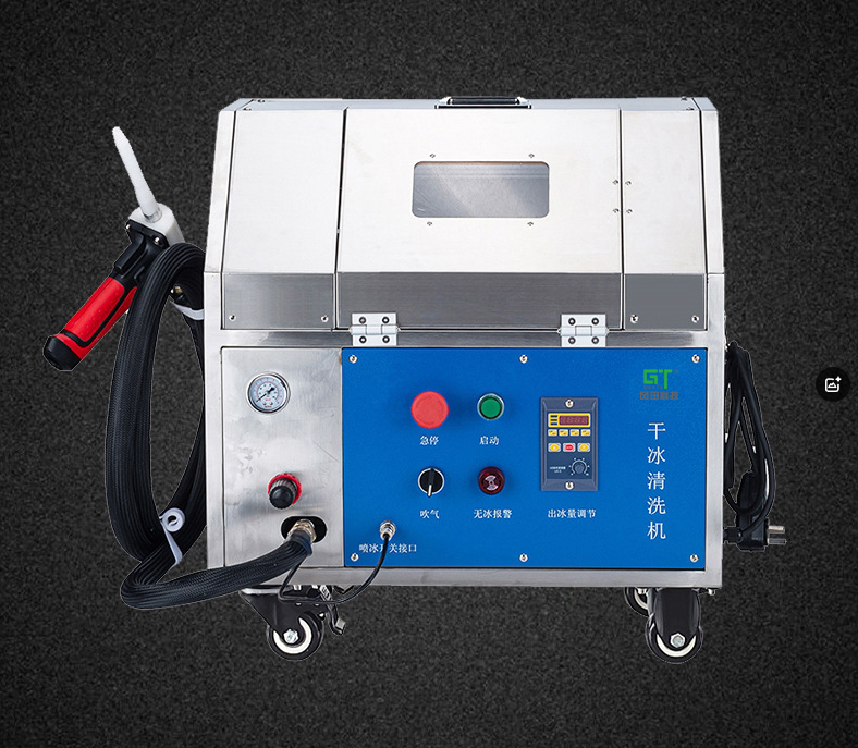 與噴鋼砂,噴玻璃砂,噴塑料砂和噴蘇打相似,干冰噴射介質(zhì)干冰顆粒在高壓氣流中加速,沖擊要清洗的表面。